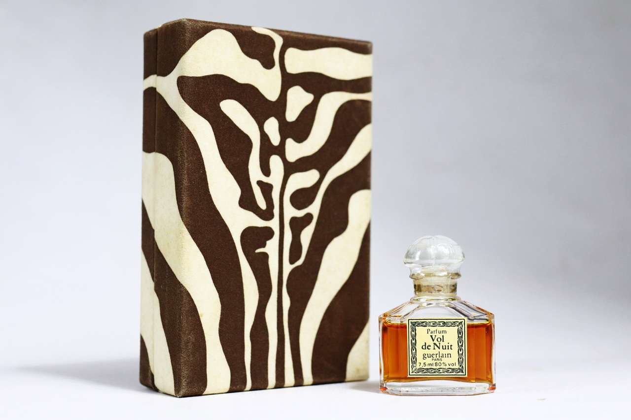 📝 รายละเอียด: Guerlain Vol de Nuit Parfum 7.5ml Splash แบบแต้ม รุ่นขวด Quadrilobe Flacon ขวดสภาพดี สมบูรณ์ คอขวดซีลพลาสติก ยังไม่ถูกใช้งาน ปริมาณน้ำหอมเหลือตามภาพ มาพร้อมกล่องลายขาวดำ พิจารณาจากภาพประกอบ