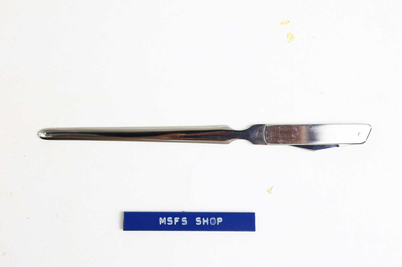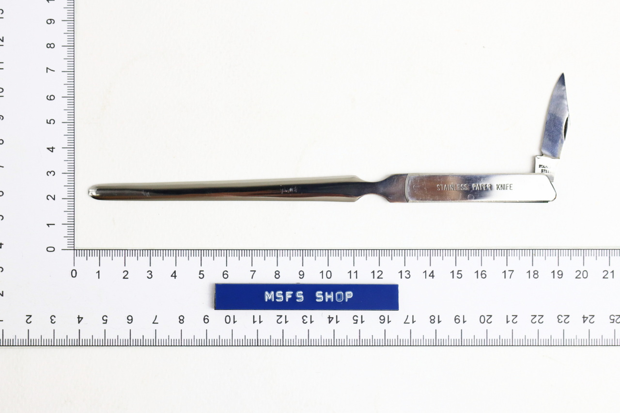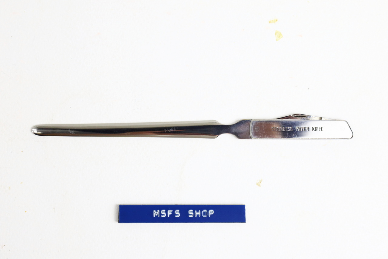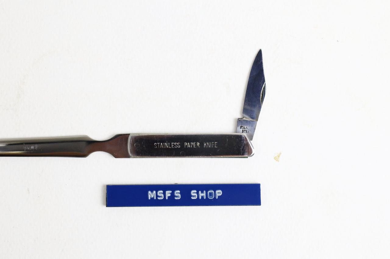 📝 รายละเอียด: มีดเปิดซองจดหมายโลหะ ขนาดเล็ก สภาพดี มีปั้ม Stainless Paper Knife สินค้าผ่านการใช้งาน มีรอยขูดขีด รอยขนแมวจากการใช้งาน มีมีดพับใช้งานได้จริงที่ด้ามจับ พิจารณาจากภาพประกอบ