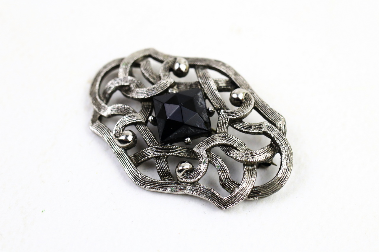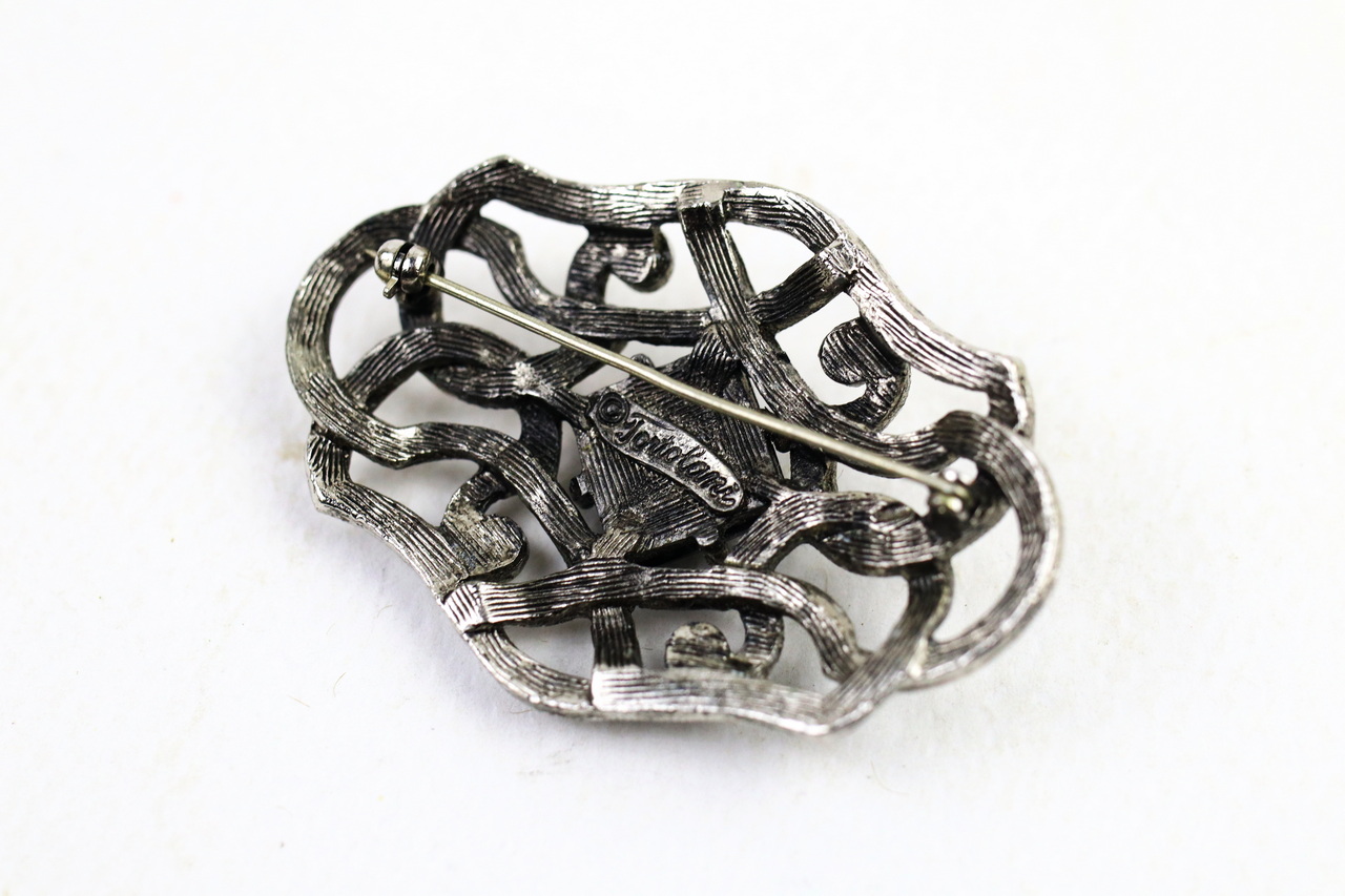 📝 รายละเอียด: Tortolani เข็มกลัดโลหะ ประดับหินสีดำ ลวดลายสวย คมชัด สภาพดี หินมีรอยบนยอดเล็กน้อย ขามีรอยงอจากการใช้งาน พิจารณาจากภาพประกอบ