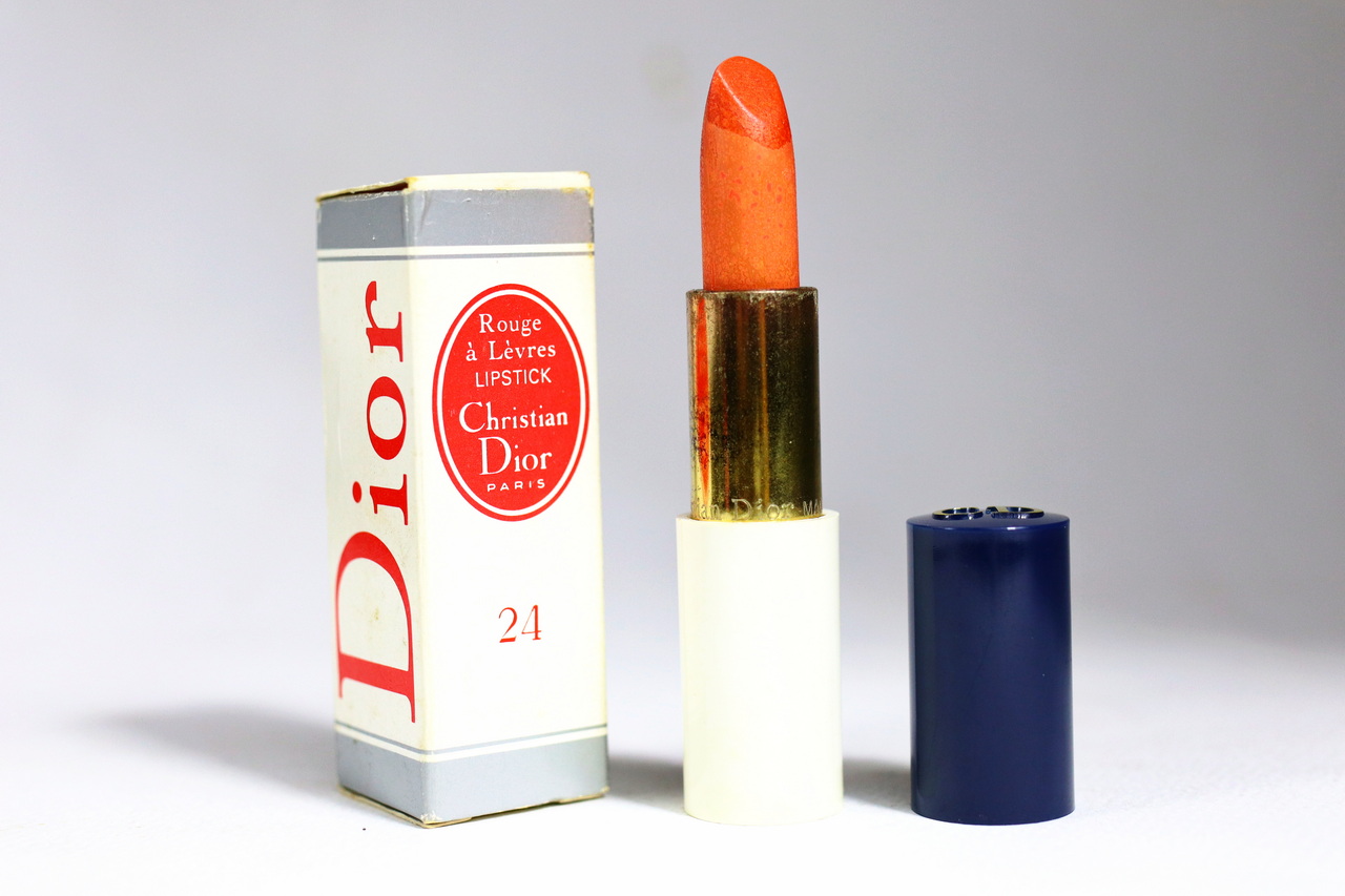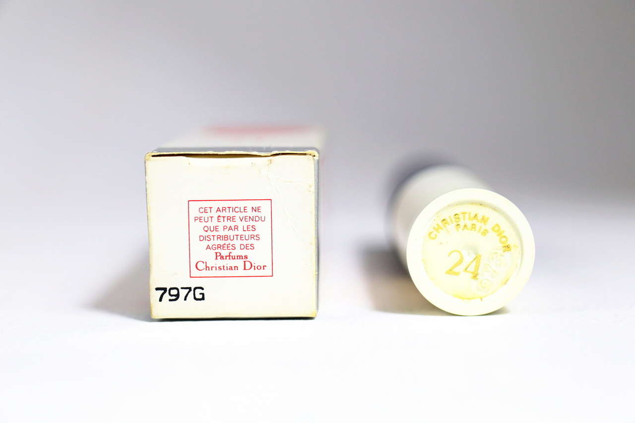 📝 รายละเอียด: Christian Dior Rouge a Levres Lipstick No.24 ลิปสติก Dior รุ่นเก่า ช่วงยุค 60s - 70s สีแดงส้ม เบอร์ 24 สีอาจมีการแตกต่างจากอดีต สภาพสะสม ตัวลิปสติกเป็นพลาสติก ส่วนโลหะสีทองมีคราบโลหะตามกาลเวลา ส่วนของลิปสติกสีมีการเปลี่ยนแปลงตามภาพ ยังไม่ถูกใช้งาน ให้กลิ่นของเครื่องสำอางเก่า มาพร้อมกล่องดั้งเดิมสภาพดี พิจารณาจากภาพประกอบ