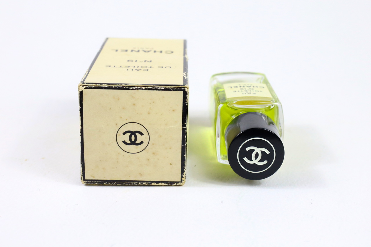 📝 รายละเอียด: CHANEL N°19 EDT ขวด 19ml ขวดแก้วเหลี่ยนรุ่นเก่า น้ำยังสีเขียวสวยปริมาณน้ำหอมเต็มขวด ตัวขวดสภาพดีสมบูรณ์ ฉลากชื่อน้ำหอมมีรอยเลอะนิดหน่อย ตัวกล่องสภาพดีพอใช้ กล่องยับพอสมควร มีรอยถลอกบ้างตามกาลเวลา พิจารณาจากภาพประกอบ