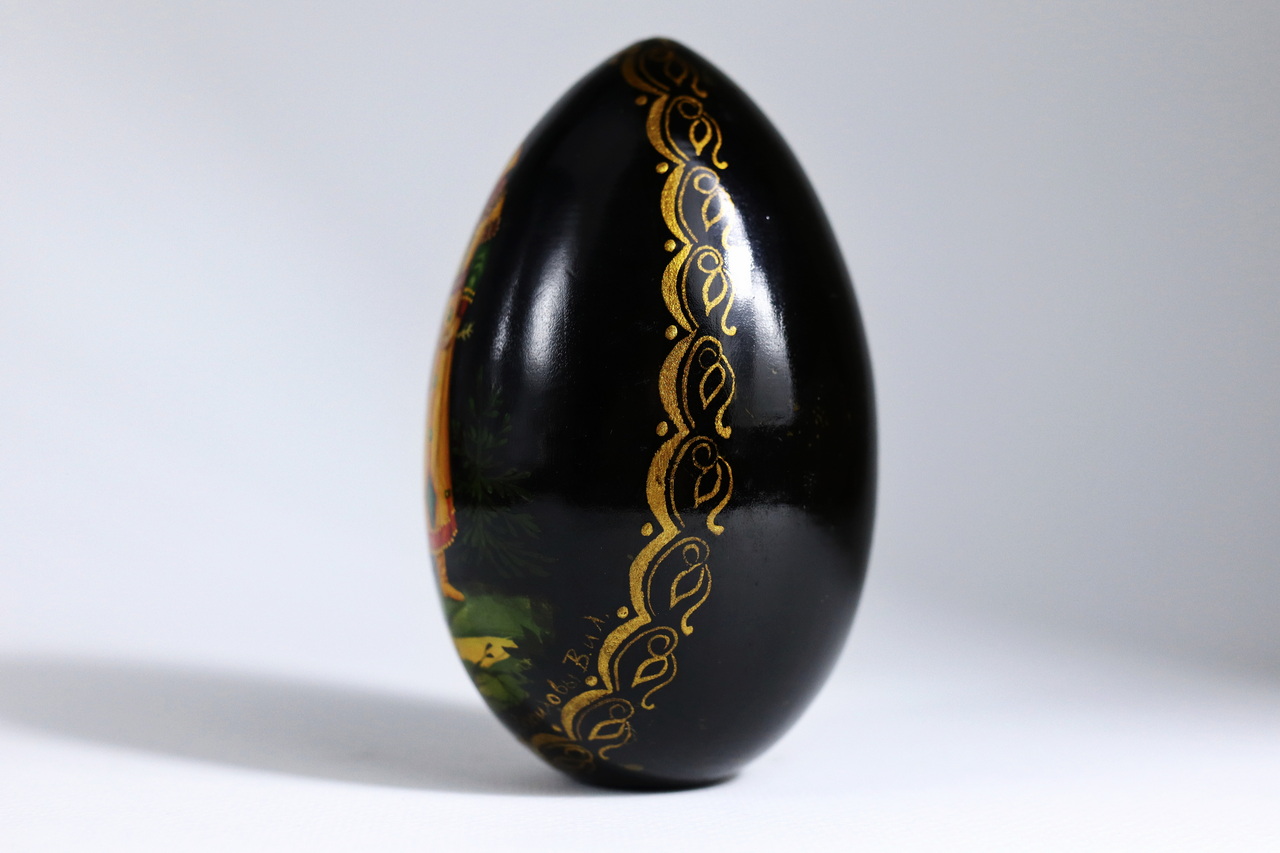 📝 รายละเอียด: ไข่ไม้วาดภาพนิทานพื้นบ้าน Russian - Russian Folk Art Hand Painted Lacquer on Wood Egg สภาพดี มีรอยบุบ รอยสีกะเทาะบ้างเล็กน้อย โดยรวมอยู่ในสภาพดี สีแลคเกอร์เคลือบมีอาการเหลืองตามกาลเวลา ไม่มีฐานไม้มาด้วย พิจารณาจากภาพประกอบ