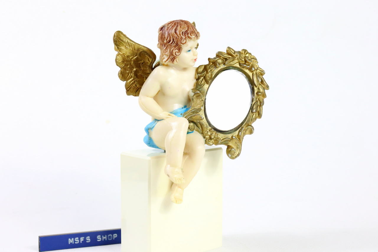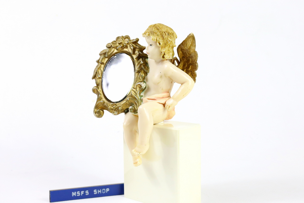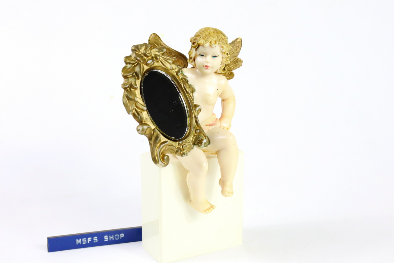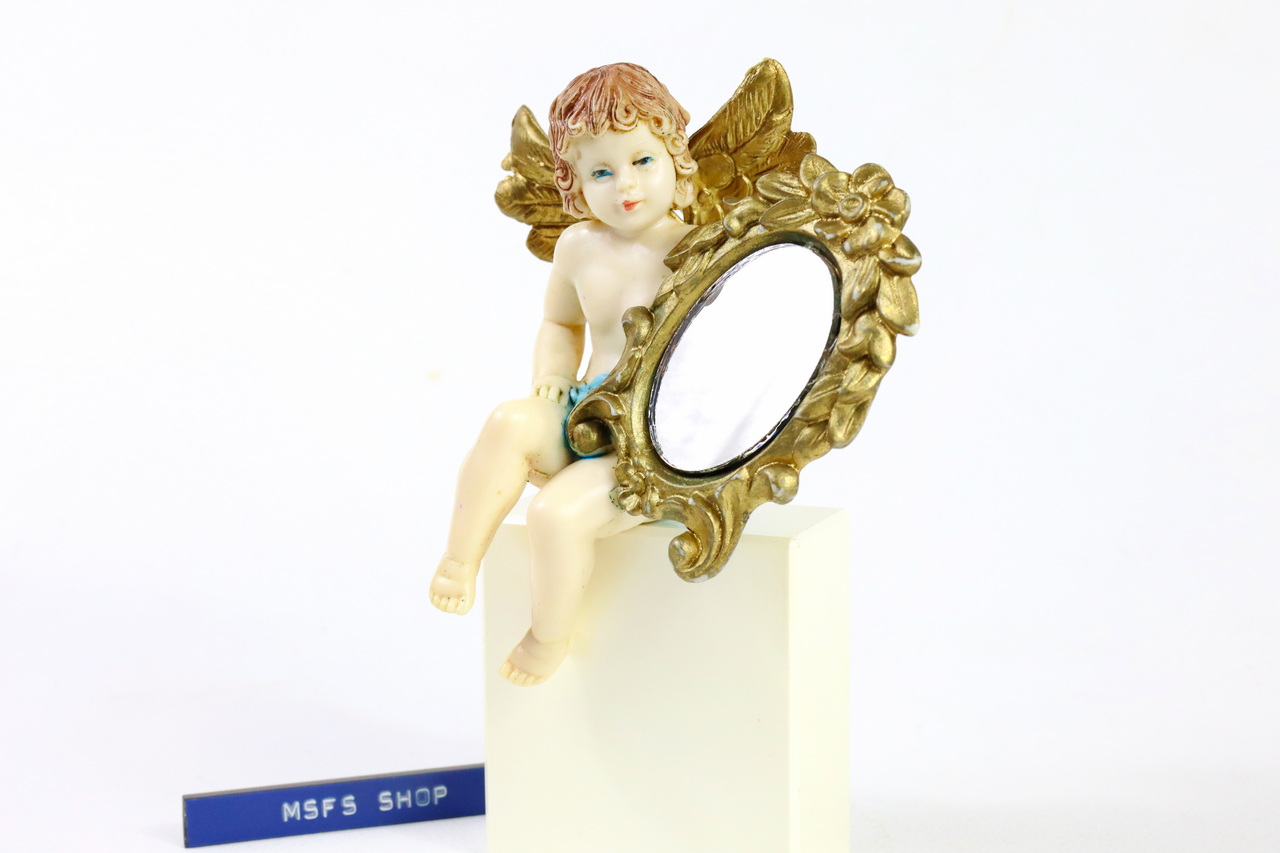 📝 รายละเอียด: ตุ๊กตาคิวปิด นั่งถือกระจก Christmas Ornament แบบ A ของเก่าสภาพดีพอใช้ พลาสติกเป็นพลาสติกเรซิ่น มีสีลอกรอบๆ ตัวตุกตา มีรอยขูดขีด ตกหล่นบ้าง ตามกาลเวลา สภาพเหมาะแก่การสะสม พิจารณาจากภาพประกอบ