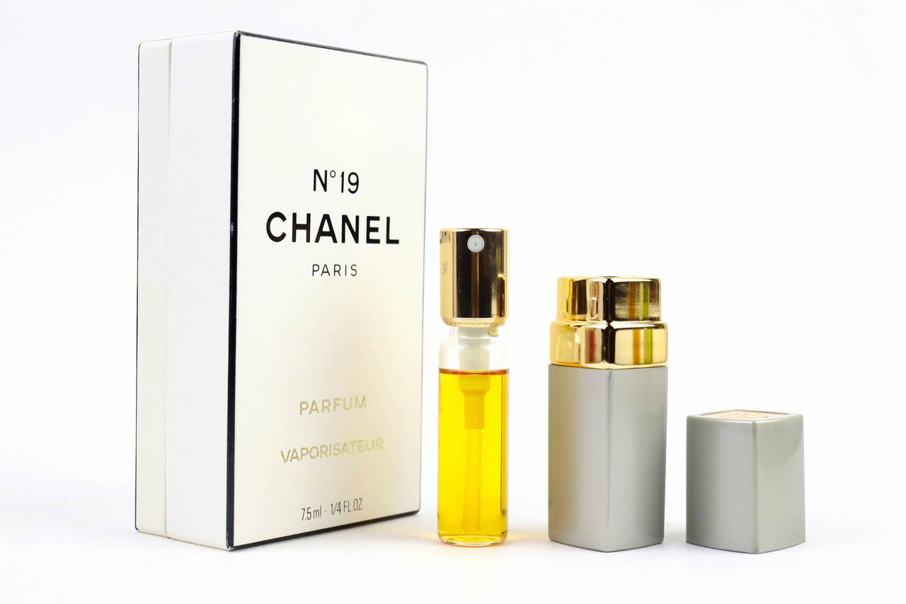 📝 รายละเอียด: CHANEL N°19 Parfum 7.5ml Purse Spray ปลอกน้ำหอมพกพา น้ำหอมเกือบเต็มขวด ตัวปลอกสภาพดีมาก แทบจะไม่มีรอย มาพร้อมกล่องสภาพดี พิจารณาจากภาพประกอบ