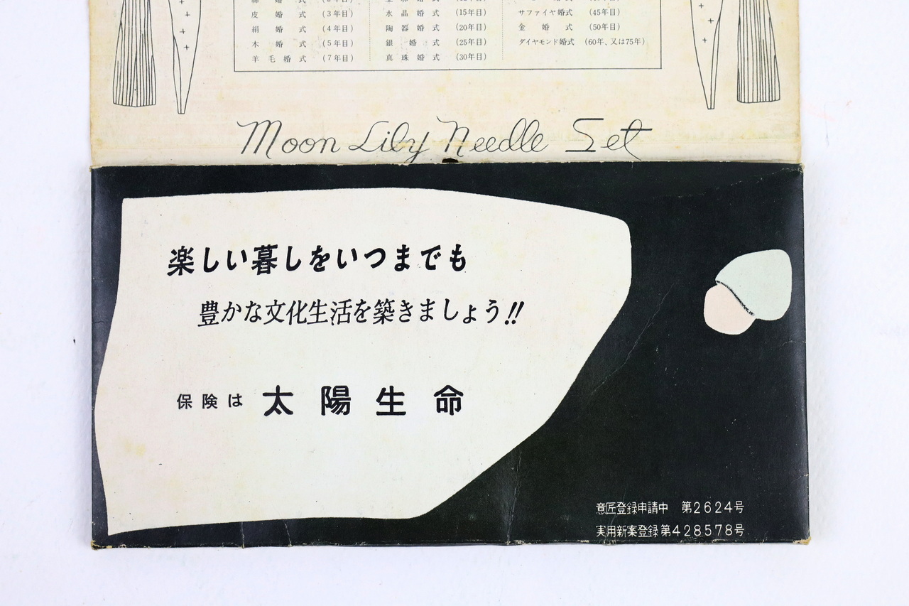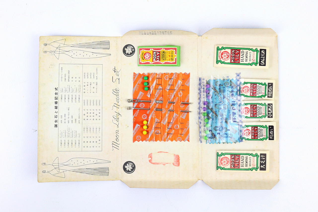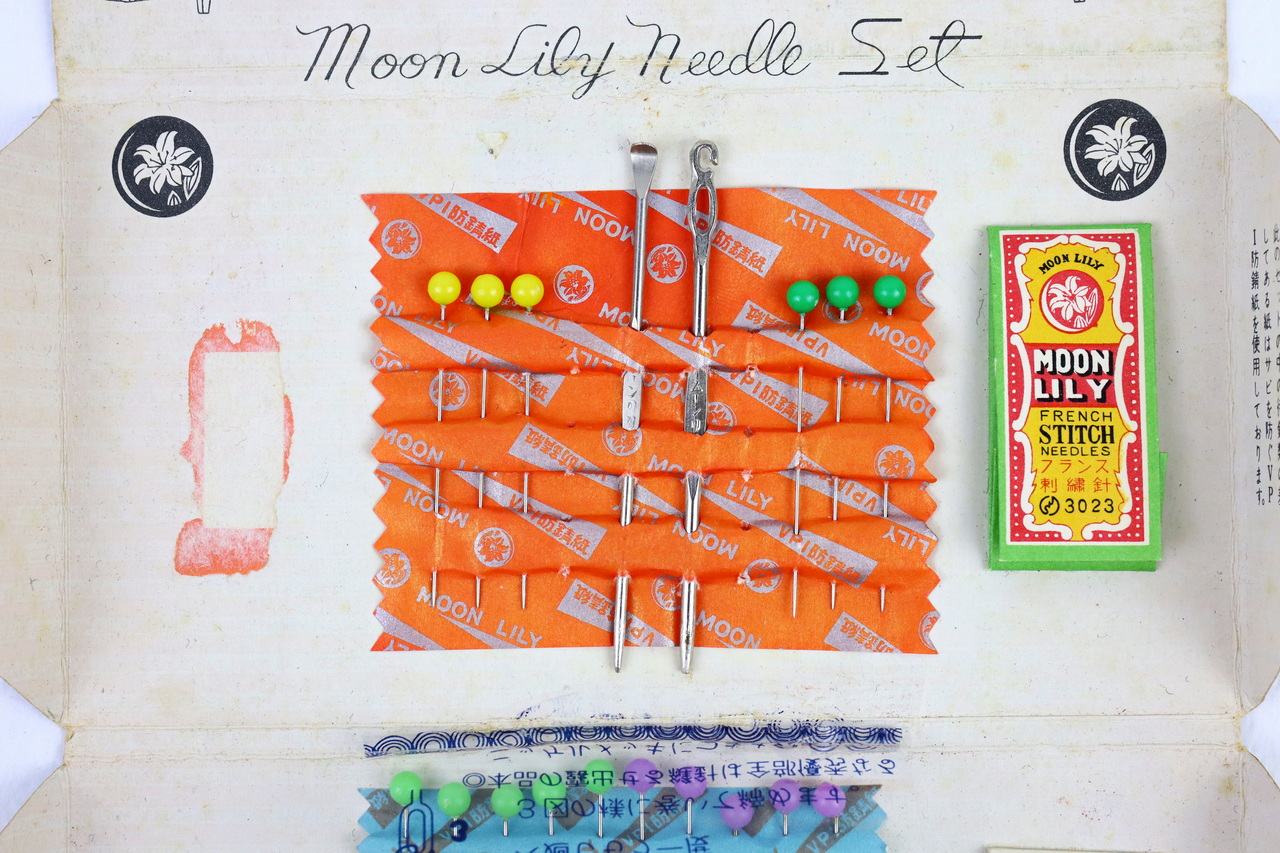 📝 รายละเอียด: Moon Lily Needle Set ชุดเข็มเย็บผ้า Vintage ซองกระดาษ สภาพดีพอสมควร ยังมีเข็มเย็บผ้าด้านในซองเล็กอยุ่บ้าง แต่ไม่ครบทุกซอง เข็มหมุดด้านนอกยังเหลืออยู่เยอะ มีรอยเลอะบ้างตามกาลเวลา พิจารณาจากภาพประกอบ